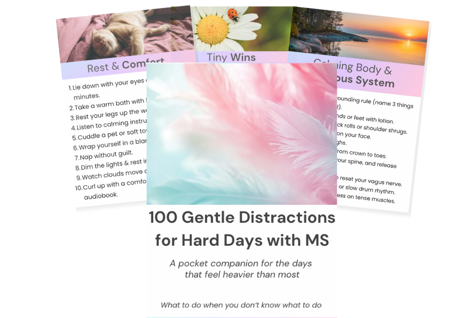 That’s what 100 Gentle Distractions for Hard Days with MS offers — a psychology-informed, nervous-system-friendly workbook to help you find relief, even in your most vulnerable moments.