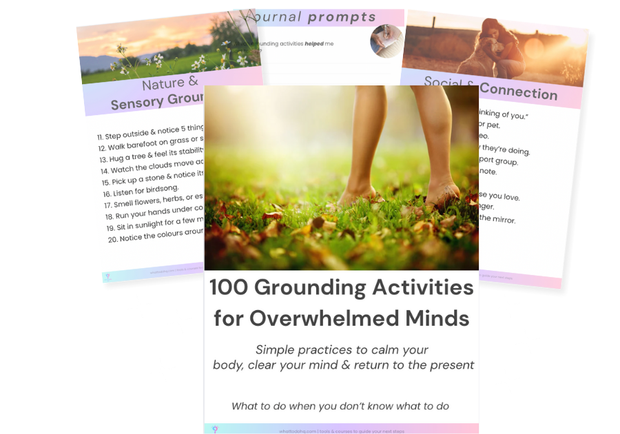 That’s exactly what the 100 Grounding Activities for Overwhelmed Minds Workbook offers — a supportive list of calming tools to meet you in moments of overwhelm.