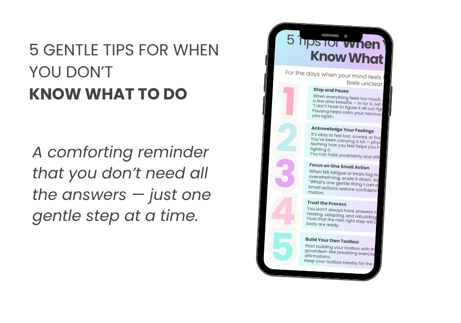 That’s what the 5 Gentle Tips for When You Don’t Know What to Do — MS Edition offers — a soothing, psychology-informed reflection designed to help you find stillness inside uncertainty.