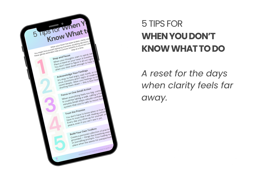 5 Tips for When You Don’t Know What to Do — After a Breakup Edition helps you pause, breathe & find small ways to steady yourself through uncertainty.