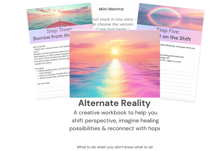 That’s what Alternate Reality Workbook — After a Breakup offers — a psychology-informed, soulful process for transforming pain into perspective & reimagining your next chapter with hope.
