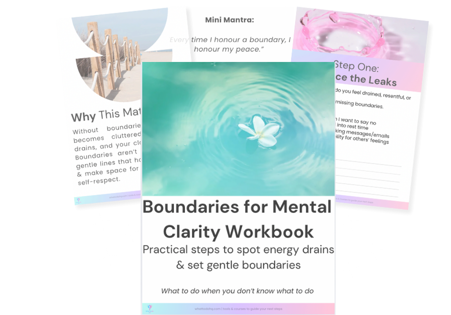 The Boundaries for Mental Clarity Workbook is compassionate, practical & grounding — a tool to help you protect your energy without guilt.