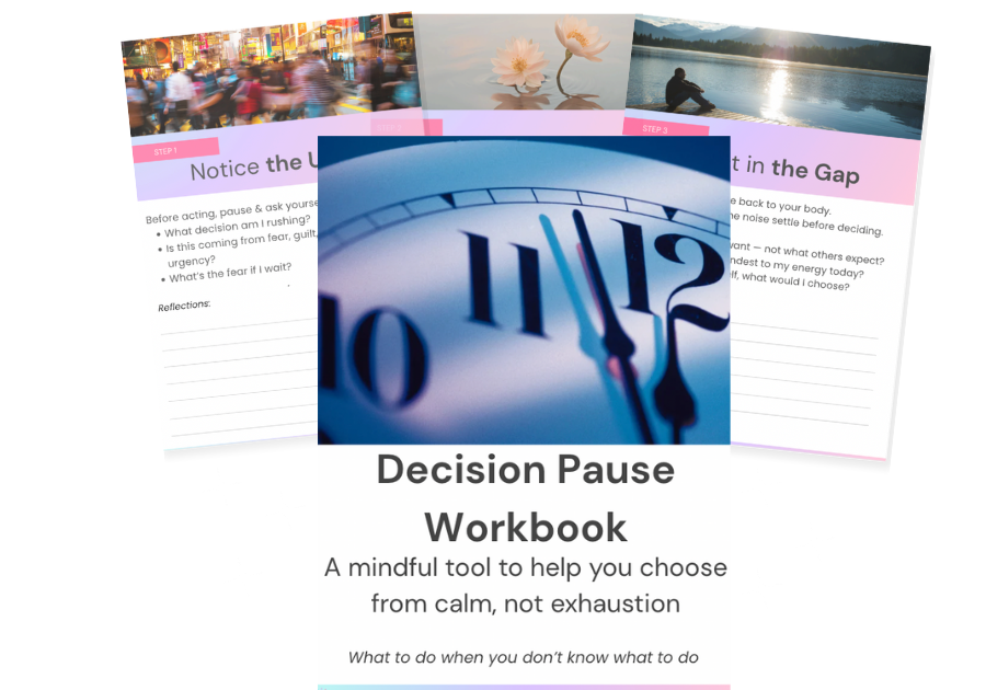 That’s what The Decision Pause Workbook — MS Edition offers — a psychology-informed, mindfulness-based process to help you make grounded, peaceful decisions.