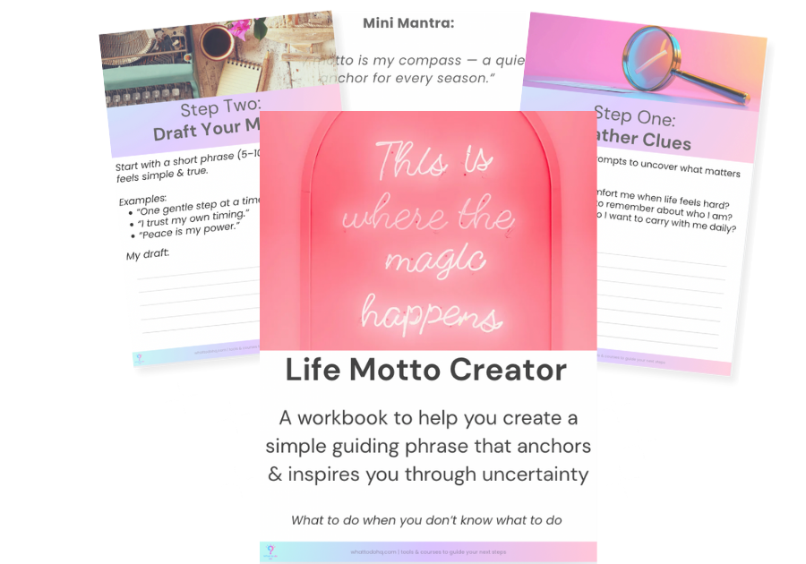 That’s what the Life Motto Creator Workbook offers — a practical & soulful tool to help you create your own guiding words.