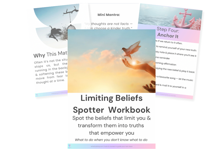 The Limiting Beliefs Spotter Workbook is designed to be simple, compassionate & practical — a tool you can return to anytime old thoughts get in the way.