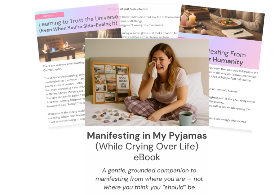 Manifesting in My Pyjamas (While Crying Over Life) is for the real moments: when you’re doing your best just to show up, when faith feels far away, & when “trust the process” sounds like a bad joke.