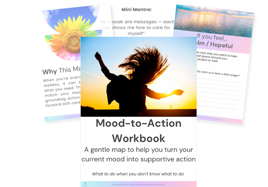 The Mood-to-Action Workbook is practical, accessible & soothing — a resource you can return to whenever you feel uncertain about what you need.
