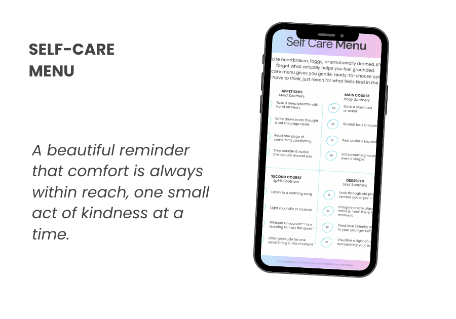 That’s what Self-Care Menu — After a Breakup Edition offers — a kind, accessible way to care for yourself without needing to think your way through pain.