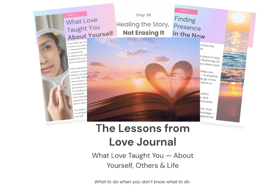 That’s what The Lessons from Love Journal offers — a compassionate space to reflect, release & rebuild.