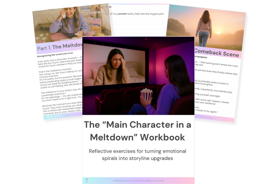 The “Main Character in a Meltdown” Workbook helps you find clarity in the chaos, meaning in the mess & peace in your own plot twist.