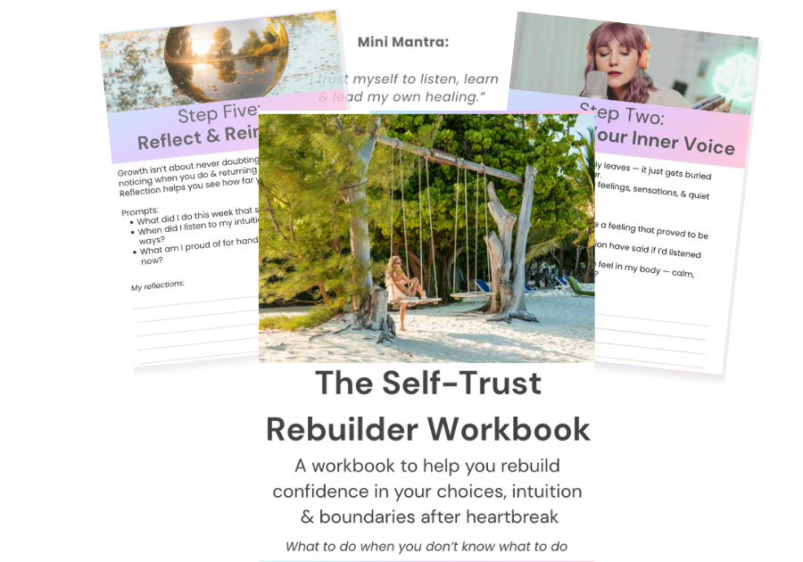 The Self-Trust Rebuilder Workbook helps you reconnect with your inner wisdom & rebuild confidence in your ability to choose, sense & lead your own healing.