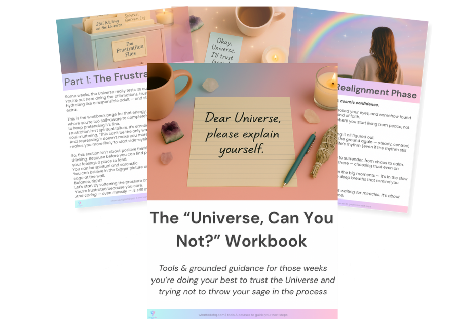The “Universe, Can You Not?” Workbook is your gentle, psychology-backed toolkit for turning emotional eye-rolls into emotional clarity.