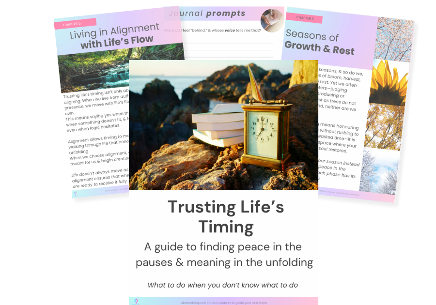 Find peace in the unfolding with the Trusting Life’s Timing Guide.