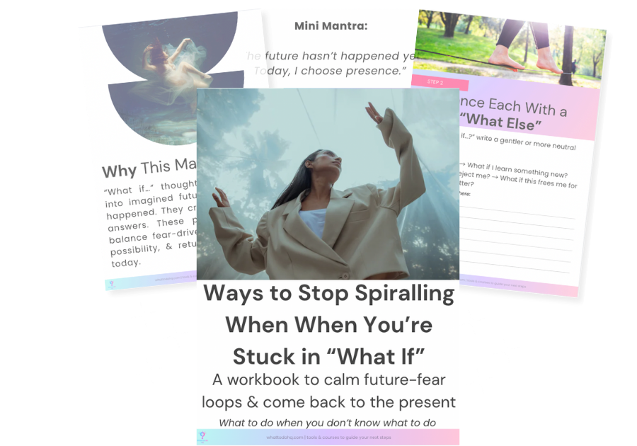 “What if” thoughts steal peace by convincing you the worst is inevitable. By balancing them with gentler possibilities & grounding back into the present, you shift from fear to clarity — one thought at a time.