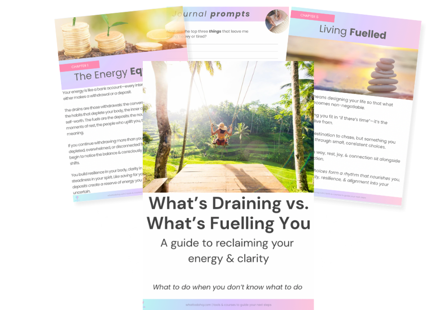 The What’s Draining vs. What’s Fuelling You Guide won’t push you to change everything at once. Instead, it meets you with compassion & gives you simple, doable ways to take your energy back.